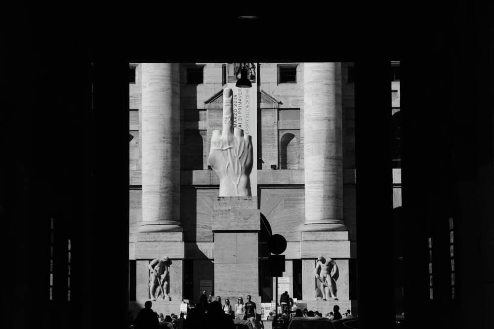 Provocative as it may be, you’ll find an actual marble statue of a giant middle finger in the heart of Piazza Affari, home to Milan’s Stock Exchange.